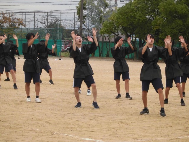 これまでの練習に頑張り、他の生徒と共に表現の発表に臨みました。