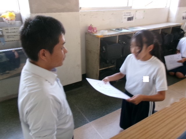 6限の総合で、「忘れ物キャンペーン」の表彰、合唱コンクールの曲順決め、福祉実践教室の希望調査を行いました。