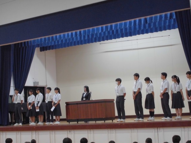 任命式では、生徒会役員だけでなく、学級役員、委員会委員長の任命もあり、少しずつ2年生が学校の中心になってきていることを実感しました。