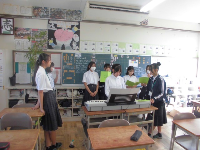 6時間目が始まる前から机を動かし、合唱隊形を作り、何度も繰り返し歌うクラスやパートごとに集り、音程を確認するクラス、歌詞やリズムを全体で把握するクラスなど、それぞれのクラスによって工夫しながら合唱練習を進めました。