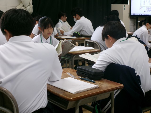 古文独特の響きやリズムを、全体で、ペアで何回も音読練習をし、