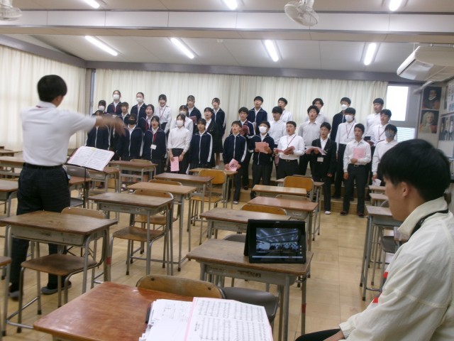 2年生・3年生は、教室や音楽室で、全体・パート練習を行っています。