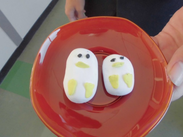 紙粘土を使い、和菓子を作っていました。