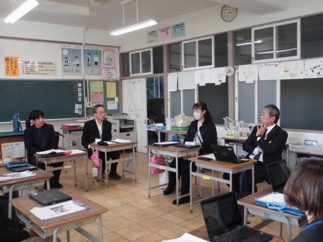 写真は、授業参観後の協議会の様子です。3校の先生方が活発に意見交換していました。