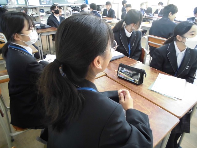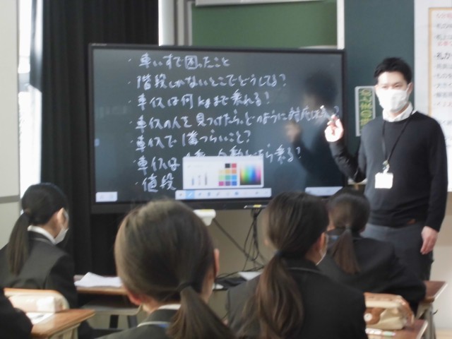 明日、講師の方を招いて、福祉実践教室があります。「点字」「手話」「高齢者疑似体験」「車いす」「ガイドヘルプ」とそれぞれが分かれて、学習します。今日は、明日に向けて、質問を考えるなど調べ学習をしました。
