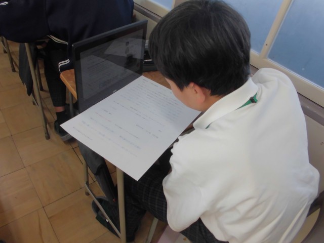 書き方や文章の構成などを確認しながら、まずは、下書きを完成させていました。