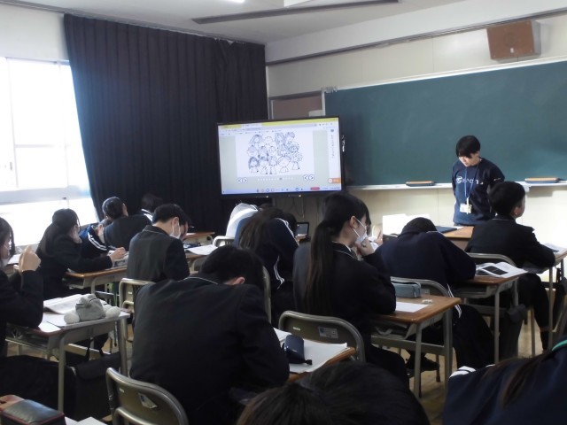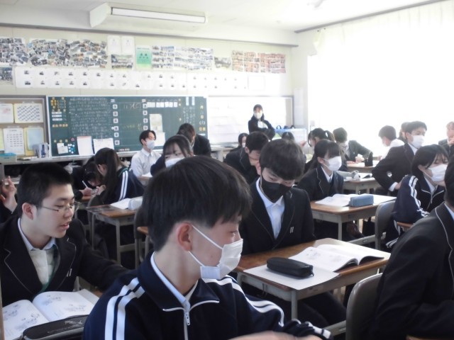 学習で生徒は近くの生徒に自分の考えを伝える様子もありました。