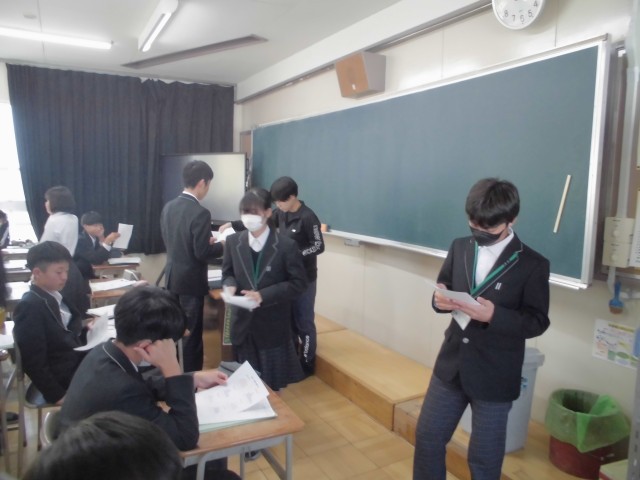 その後、昨日と今日の2日間で行われた読み聞かせの感想を書いたり、職場体験学習のレポートを完成させました。