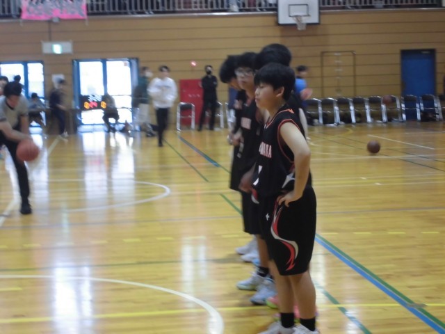 一試合目は、暁中学校と対戦をしました。最初はかたさもあり、なかなかうまく動くことができない場面もありました。しかし、みんなで声を出し合い、徐々に動きもよくなり、練習してきた成果も発揮し、勝つことができました。