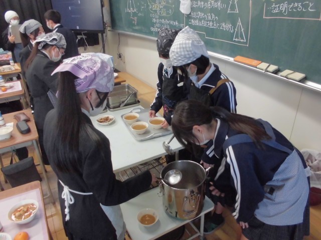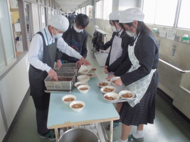 12月11日(木) 2年生 給食の準備のようす
