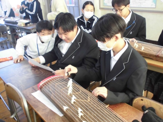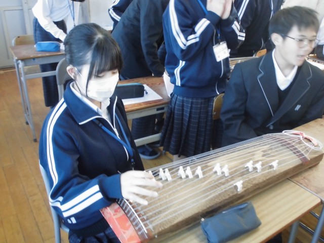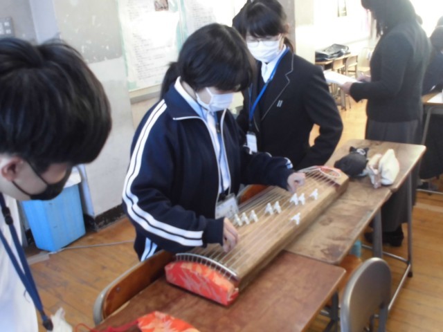 音楽の授業で、琴の音色の違いを確認しました。弾き方の違いで、間や音色がどう変わるかを、グループで確認をしました。みんなで協力しながら、作業をすることができました。