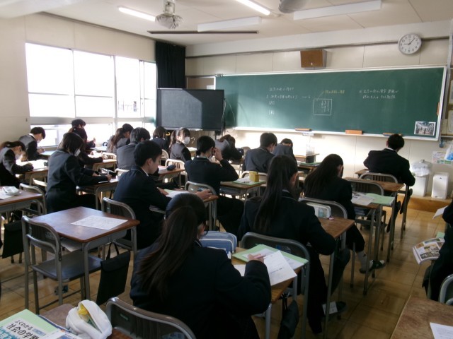 「決意の書」の原稿ができた生徒は明日から始まるテストに向け、勉強を進めていました。