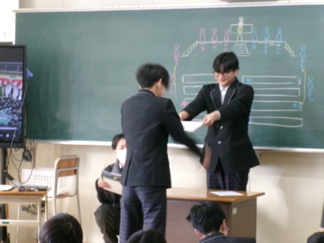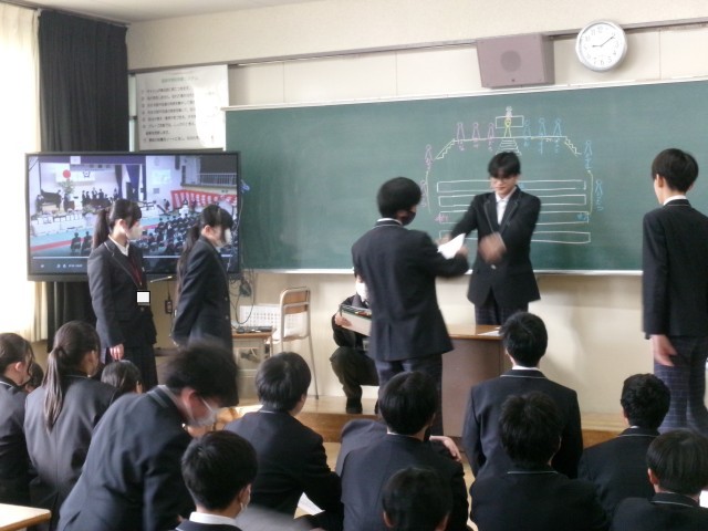 卒業式に向けての練習が始まりました。今日は、初回ということで卒業式の流れを動画で確認し、卒業証書の受け取り方を練習しました。