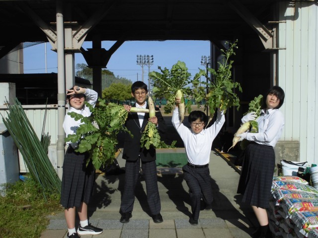 本日の部活動で、ダイコンの収穫をしました。