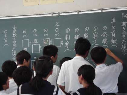 来週からの中間テストに向けて、テスト範囲の漢字の学習です。黒板にチョークで字を書くという行為は、子どもたちにとって少し特別なようです。明日は台風が近づき大変そうですが、この3連休でしっかりとテスト勉強をしてほしいと思います。