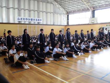 中間テストが終わり、3時間目に新役員の任命式がありました。生徒会をはじめ各学級のリーダーたちが校長先生から任命状をいただきました。『リーダーを支えるのは、1人1人の力』という言葉を胸に、みんなの力を合わせて素敵な萩中を作っていってほしいと思います。