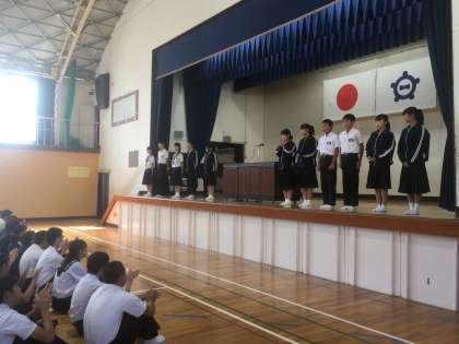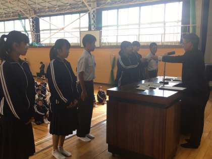 今日は、2学期中間テストの後、後期の役員の任命式を行いました。新しい生徒会やリーダーたちは後期に向けて、はりきっています。今よりもっと明るい学校生活を送れるよう頑張ってほしいと思います。