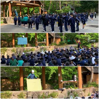 ラジオ体操をして、今日の予定や片付けの説明を聞きました。
