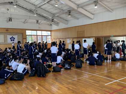 実行委員の終わりのあいさつを終え、帰りのあいさつをしました。一泊二日の野外活動が終わりました。疲れた体をゆっくり休めてほしいと思います。