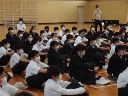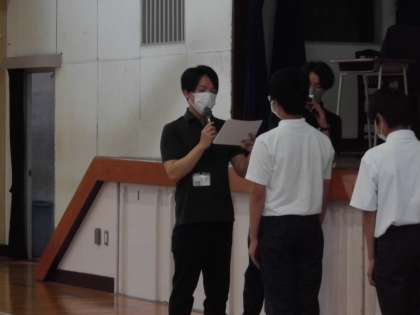 集会では、校歌コンクールの説明や校外学習で行った、リアル人生ゲームの表彰がありました。