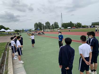 健康観察を行い、先生の話を聞いて、これから競技に臨みます。