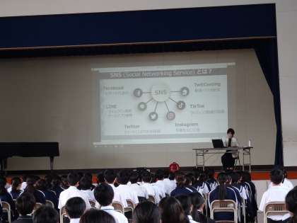 SNSの適切な使い方について、本校のICT支援員から話を聞きました。
