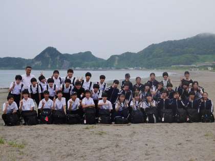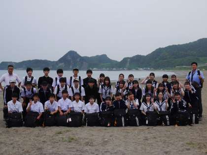 海をバックに写真を撮りました。小雨でも嬉しそうです。