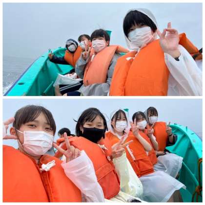 自然を満喫しています。「とびうおが跳ねた!」と喋っていた班もありました。