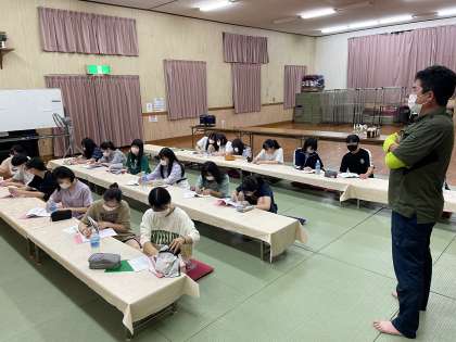 自己紹介をしたり、学校で考えてきた質問をしています。