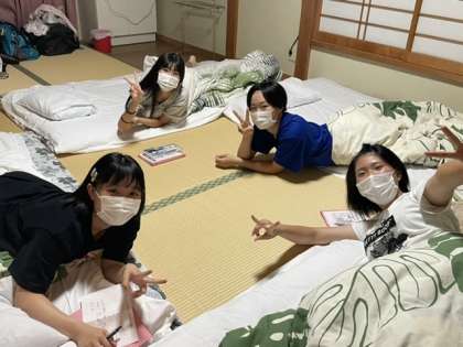 班のメンバーとゆっくり過ごしています。一日目もまもなく終わろうとしています。友達と過ごす大切な時間を有意義に過ごしてください。