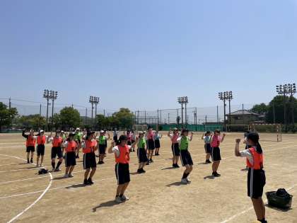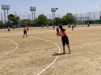 女子の体育は、ハンドボールを行いました。しっかり準備運動をした後に、ペアで投げ、ランパスも行いました。