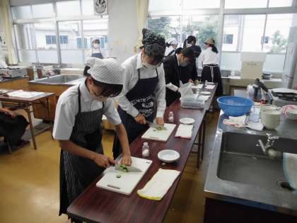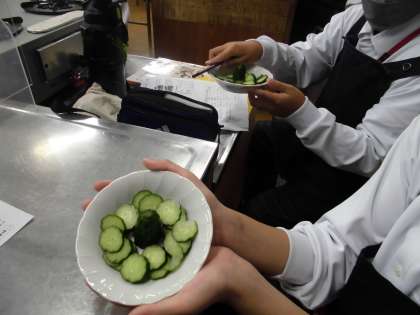 1−2の家庭科での、きゅうりの輪切りの様子です。