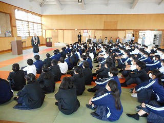 名古屋刑務所の教誨師の石原和久様をお迎えし、2年生を対象に「ネット社会と中学生」と題して健全育成講演会を行いました。ユーモアあふれる軽快な話の中にネット社会でどんなことに気をつけなければならないのかなど、意味深いお話を伺いました。生徒たちが今日の話を心にとめて、明るく成長していってくれることを願っています。
