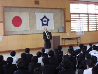 名古屋刑務所から教誨師の石原さんをお招きして、「ネット社会と中学生」という演題でお話をいただきました。