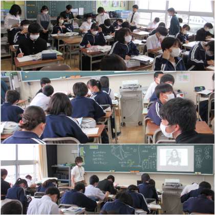 3年生の社会で授業公開がありました。「第二次世界大戦が起こった理由と国際関係の変化について考えよう」というめあてのもと、自分で考えたり、周りの子たちと相談しながら世界情勢を話し合ったりしました。