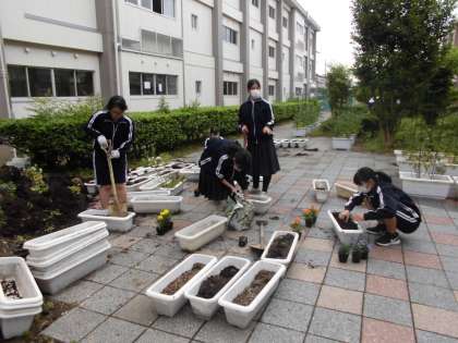 本日の部活動で、花の苗植えや花壇の整備をしました。