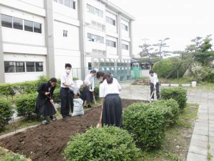 整備した花壇には、来週からゴーヤの種をまいたり、トマトなどの苗を植えたりしていきます。