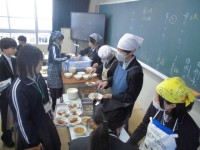 サクラの木の下でクラスごとに写真を撮った後、2時間目以降は明日から始まる給食当番の役割分担や持ち物の確認などを各クラスでしました。