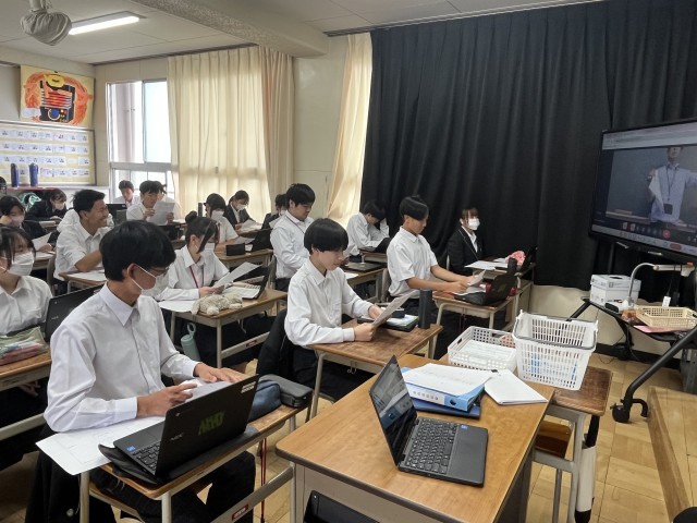 本日、6限の総合の時間に進路学習をしました。はじめに進路指導主事の先生から体験入学などの話を聞いた後、自分たちで気になっている高校を調べました。みんな真剣に話を聞いて、意欲的に高校調べができました。