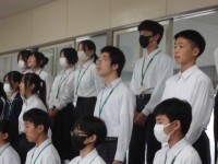 学年で行われた選手激励会に参加しました。同じ部活動の生徒ともに皆の前に並び、円陣...