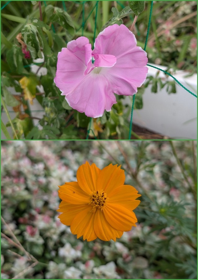 しかし、今になってアサガオがポツンポツンと花を咲かせています。
