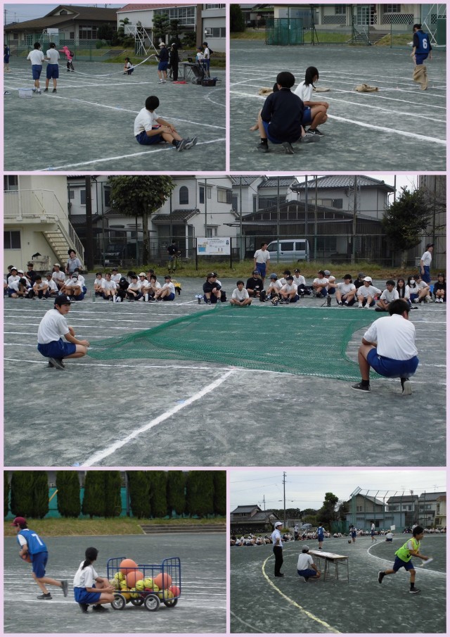 今日の体育祭練習は、リレー種目(障害物、学級対抗、ワープ、群団対抗)のリハーサルを行いました。