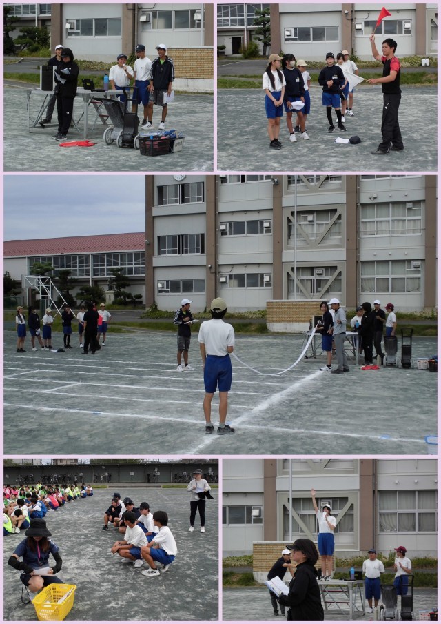 進行、指揮、放送・音楽、監察、出発合図、記録、招集、器具、ゴールテープ、ゼッケン、救護・安全などの係を、担当教師と共にしっかりと役目を果たしていました。
