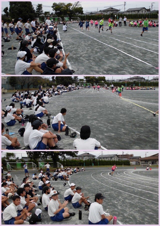 生徒席での応援は、群団ごとのまとまりが出てきて競技者を盛り立てています。