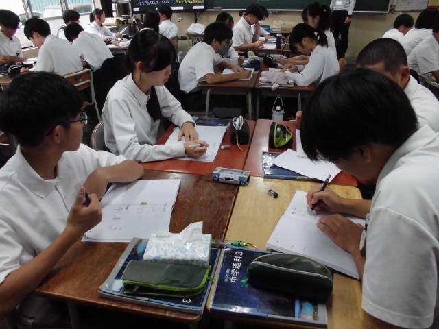 3年生の理科では、力の分解について学習していました。前時で学習した力の合成と分解の共通点や違いに着目して学習を進めていました。