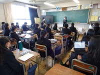 1年生の技術では木材加工の実習に入りました。本やCD、小物など入れるものを考えて、棚を作成しています。