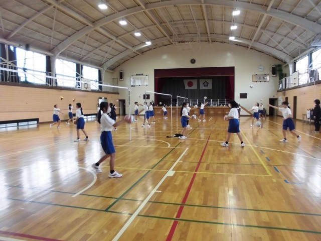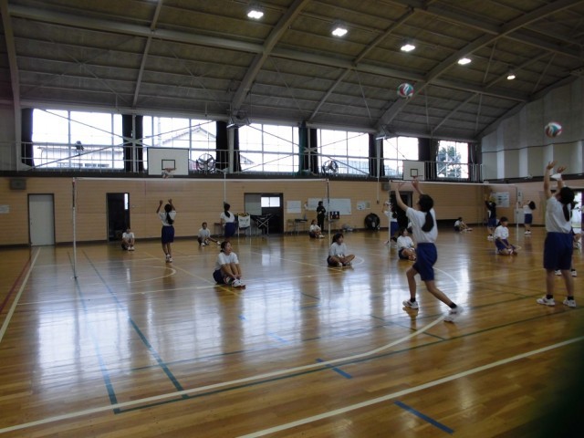 バレーボールに取り組んでいます。落とさないために、つないで相手に返すために、基本技能を磨いています。