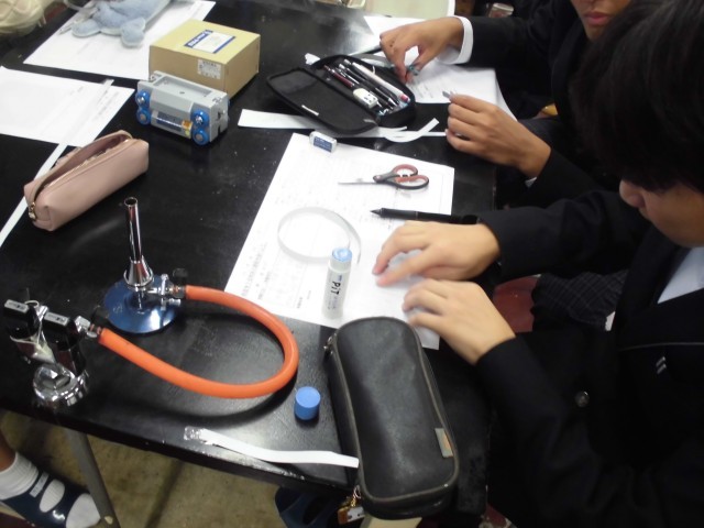 3年生の理科で、斜面を下る物体の運動について学習をしました。実験道具から自分たちで実験方法を考え、実験結果をグラフや表に表していました。条件をかえた実験の結果を比較することで、斜面を下る物体の運動について班員と議論し、理解を深めていました。