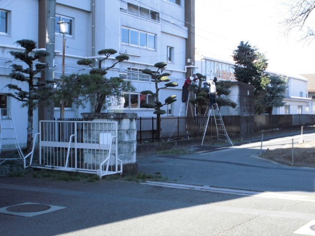 今日は、造園業者の方が、校内の樹木を剪定(せんてい)してくださっています。