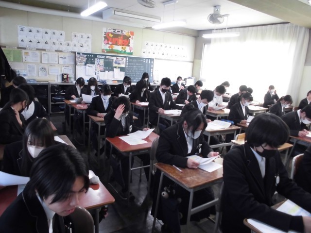 2年生の授業では学年末テストの返却が始まりました。2年生最後の定期テスト。努力の成果を発揮できた人、思うように力を出し切れなかった人、それぞれだと思いますが、間違えたところは、必ず復習し、ステップアップしていきましょう。